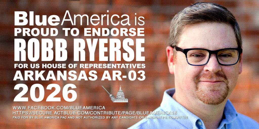 However, there is a little something stirring in the northwest corner of the state— the 3rd district, which includes Fort Smith, Fayetteville and Bentonville. The PVI is R+13 and it doesn’t look like a likely place for Arkansans to begin to shrug off their fascist yoke. But… a couple months ago, an old friend from Vote Common Good, Robb Ryerse, called and told me he was considering running against incumbent Steve Womack, a garden variety right-wing Republican.